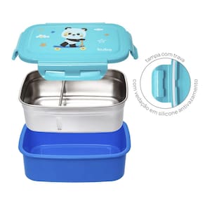 Características: Volume de 600ml. Divisória ajustável e removível. Tampa com vedação em silicone antivazamento. Adequado para alimentos quentes e frios.