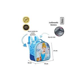 Design exclusivo: Estampa da Cinderela com detalhes em glitter, tornando-a ainda mais mágica. Fechamento por zíper: Facilita o acesso ao compartimento principal. Alça de mão e costas: Versatilidade para carregar da forma que preferir. Isolamento térmico: Mantém os alimentos frescos por mais tempo. Material resistente: Garante durabilidade e resistência no dia a dia.