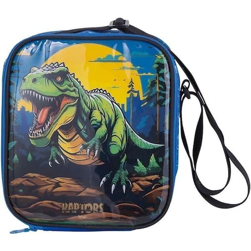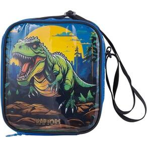 Possui forro interno térmico cinza para evitar manchas, elástico interno, alça tira colo com regulagem e elástico para prender no carrinho da mochila, visor externo e etiqueta para nome da criança e acabamento da estampa em PVC, que facilita a limpeza. Dimensões (LxAxP)cm 24 x 20,8 x 10,3. Capacidade 5,1 L. Indicado Para: Escola Nome Do Desenho: RAPTOS
