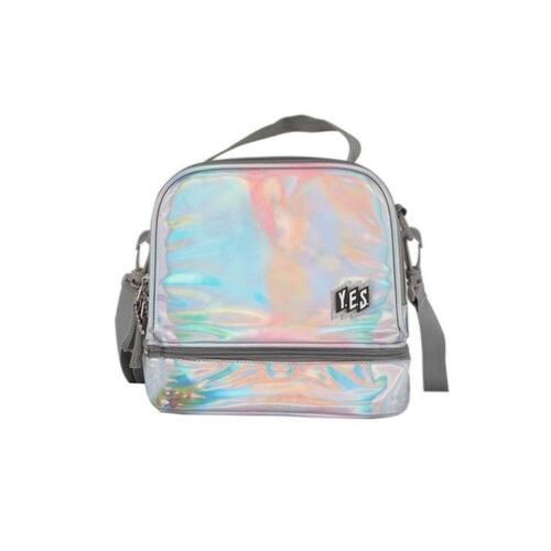 Apresentamos a lancheira holográfica da yes, uma fusão perfeita de estilo e funcionalidade para acompanhar o seu dia com muito charme. Com suas duas divisões espaçosas e bolso externo, esta lancheira proporciona organização sem abrir mão do design futurista holográfico. O fechamento em zíper garante segurança aos seus pertences, enquanto o resistente material sintético pu e pvc oferece durabilidade e fácil limpeza. Versátil, a lancheira conta com cinta para acoplar ao carrinho da mochila, alça de mão ergonômica e alça transversal ajustável, proporcionando opções de transporte que se adaptam ao seu estilo de vida agitado. Dimensões aproximadas cm : 15x21x21 Atenção: imagem meramente ilustrativa. Pode ocorrer mudanças no tom da cor para o produto real.