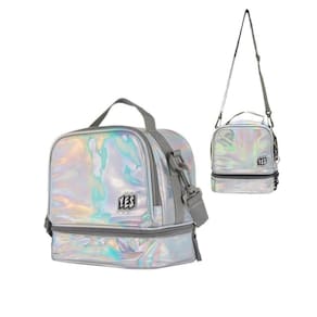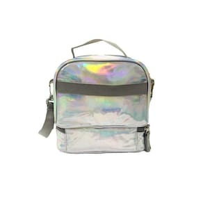 Lancheira E Bolsa Com Alça 2 Divisórias Prata Holo Yes