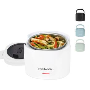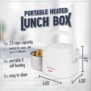 Nostalgia Lancheira elétrica portátil de 590 ml – Tamanho de viagem com capacidade de 2,5 xícaras para sopa, pimenta e sobras – tampa selada de silicone à prova de vazamento, alça de transporte - Reinvente sua rotina de almoço: Você está entediado de comer o mesmo sanduíche antigo para o almoço todos os dias? Agora você pode renovar completamente sua rotina de almoço preparando todos os tipos de pratos deliciosos como sopas, macarrão, refogados e muito mais para aquecer alimentos quentes durante a hora do almoço, mantendo você abastecido para o seu dia de trabalho. - AQUECIMENTO FÁCIL E COMER SABOROSA: com esta lancheira portátil com autoaquecimento, embale uma refeição e ligue-a algumas horas antes da hora da refeição para que esteja pronta quando você estiver com fome. Evite o incômodo de cozinhar o almoço no local preparando com antecedência para que quando seu estômago começar a resmungar, você possa simplesmente pegar sua lancheira e desfrutar de uma refeição quente. - Grandes apetitos para levar: Encha o recipiente de alimentos interior de aço inoxidável com até 2,5 xícaras (567 g) de sopas, pimenta, macarrão, refeições leves e sobras para uma refeição fácil e portátil que você pode levar com você para o trabalho, viagens, recreação ao ar livre e muito mais. - PORTABILIDADE À PROVA DE VAZAMENTO: O design de tampa dupla com grampos de bloqueio mantém seu almoço seguro e evita derramamentos e vazamentos, especialmente de refeições mais líquidas, como sopas ou chili. Transporte despreocupado! Leve o aquecedor de alimentos para o seu carro e para o escritório sem a preocupação de fazer bagunça. A alça de transporte dobrável e o cabo de alimentação destacável facilitam ainda mais a portabilidade. - FÁCIL DE LIMPAR: O recipiente de alimentos removível é fácil de limpar e pode ser lavado na lava-louças, facilitando o uso diário para sua rotina de refeições e permitindo um uso duradouro. Gaste menos tempo se preocupando com pratos e organizando confusões de recipientes usando esta lancheira como seu recipiente de almoço diário!