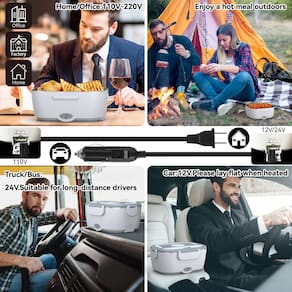 - Aquecedor de alimentos 3 em 1: você sempre tem refeições frias no trabalho, no carro ou em movimento? Se sim, então nossa lancheira aquecida portátil é feita sob medida para você. A lancheira elétrica pode ser aquecida em carros, caminhões, escritório de trabalho e assim por diante