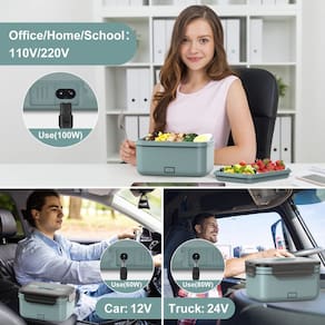 Suporta carros 12 V/caminhão 24 V + uso doméstico 110 V/220 V. Removível: o recipiente de aço inoxidável e a camada de frutas de plástico são removíveis, portanto, muito fáceis de limpar. Portátil: a aparência elegante e a alça portátil permitem que você carregue comida com você. E equipamos uma bolsa térmica portátil. Observação: 1. Não coloque o dispositivo na geladeira para armazenamento frio. 2. A tampa do escapamento deve ser aberta antes do aquecimento para evitar que a pressão de vapor dentro da lancheira faça com que o produto deforme e não possa ser utilizado normalmente. 3. Não mergulhe a base de aquecimento em água para limpeza. 4. Se a comida tiver sido deixada de lado por um longo tempo, sugere-se adicionar um pouco de água à comida e depois ligar ao calor, para que a comida fique mais macia. - Funções de aquecimento atualizadas de 100 W?Não é necessário procurar refeições no micro-ondas e abraçar a alegria de desfrutar de uma refeição caseira quente e deliciosa. Nossa lancheira elétrica adota o aquecimento de temperatura constante PTC atualizado e usa ciclo térmico de 100W de alta potência, baixo consumo e alta eficiência, aquecendo seu almoço na velocidade mais rápida em apenas 20 a 25 minutos, mantendo a umidade e o frescor dos alimentos. - ?Lancheira elétrica 4 em 1 atualizada? Não é necessário esperar na fila para aquecer, agora basta ligar e aquecer sua comida com a lancheira de aquecimento elétrico em casa/escritório usando os cabos de alimentação de 110V/220V ou no carro/caminhão usando os cabos de alimentação de 12V/24V. Mantenha o aquecimento constante ao conectar, sempre servindo uma refeição quente. - ?Design exclusivo atualizado com propriedade intelectual?Projetado por Herrfilk e propriedade intelectual de design aplicado nos Estados Unidos. O design de camada dupla à prova de vazamento e a capa mais forte integrada são perfeitos para embalar uma variedade de alimentos em porções saudáveis e alcançar o equilíbrio nutricional. - ?Recipiente de alimentos atualizado de 1,8 L + recipiente de frutas de 0,7 litro?Projetado com capacidade de 1,8 L, recipiente de aço inoxidável 304 para alimentos. Desfrute de sopas e sopas com confiança como a capa segura e à prova de vazamentos da nossa lancheira elétrica. Com o recipiente de frutas PP de grau alimentício de 0,7L, permite que você mantenha vários itens de alimentos separados e organizados seus utensílios nele. - ?Recurso atualizado e material de segurança?Nossa lancheira aquecida prioriza sua saúde e o meio ambiente. O sistema de aquecimento atualizado e o revestimento de alta qualidade garantem durabilidade e custo-benefício. O design seguro para lava-louças e a bandeja de aço inoxidável preservam o sabor das suas refeições. Feita de material premium de qualidade alimentar, é a melhor lancheira térmica para embalar alimentos saudáveis. Desfrute de alimentos quentes e saudáveis. - ?Serviço pós-venda a qualquer momento?Se você achar que a lancheira não pode ser aquecida ou tiver outros problemas após recebê-la, sinta-se à vontade para entrar em contato conosco e forneceremos uma garantia de devolução do dinheiro em 30 dias e 12 meses de substituição.