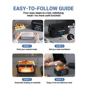 - Portátil e conveniente: a lancheira elétrica possui uma alça oculta para transporte fácil e economiza espaço e inclui garfos e colheres extras. Os recipientes de aço inoxidável podem ser lavados na lava-louças. Observação: Evite limpar a base de aquecimento com água ou adicionar água a ela para evitar curto-circuitos.