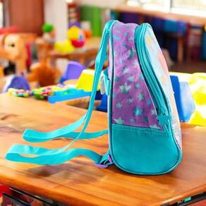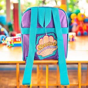 Materiais: Poliéster e Plástico térmicoDimensões:Altura: 28cmLargura: 21cmProfundidade: Aproximadamente 10cmPeso Aproximado: 200gCor: Roxo com estampa de Sereia