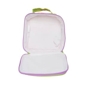 Lancheira Escolar Marie Fun Time rosa, confeccionada em material têxtil com um bolso frontal Recorte plastificado e estampas da personagem Alças duplas de ombro e uma de mãos Além de fechamento em zíper Forro em material sintético térmico. Acompanha uma garrafinha e um pote
