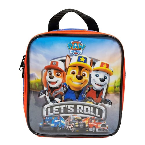 Lancheira Paw Patrol X2 - 10784 - produzida em poliéster resistente e estampado. Painel frontal PVC Cristal . Compartimento com revestimento em material que ajuda a manter o frescor dos alimentos por mais tempo. Zíper com puxadores simples . Alças reguláveis com faixa para acoplar o produto na haste da mala de rodinhas. Produto certificado. Dimensões: 21x19x10 Peso: 250gr