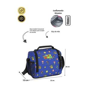 Produzido em poliéster Possui alças de costas Material interno térmico Ziperes com puxadores personalizados Estampa estilizada Não acompanha potinho e garrafinha Dimensões: 22 x 20 x 8cm alt x larg x prof ;