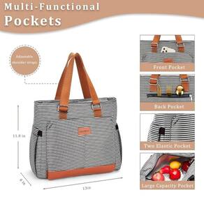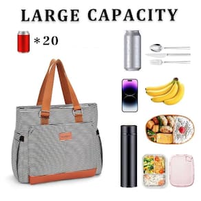 Esta lancheira tem excelente isolamento para manter sua comida na temperatura perfeita, além de oferecer um interior espaçoso que pode conter todos os seus lanches e bebidas favoritos. Com uma alça de ombro conveniente e ajustável, é fácil de transportar onde quer que você vá. E, com seu design clássico e elegante, esta lancheira certamente fará uma declaração onde quer que você a leve. - Excelente isolamento: Graças à espuma de isolamento de 6 mm de espessura e o forro de alumínio espesso de grau alimentício ajuda a manter sua comida fria/fresca/quente por até 8 horas, é maior do que a média das lancheiras. Você pode desfrutar de uma refeição perfeita onde quer que esteja. Na verdade, é uma boa companhia para atividades ao ar livre. - LADO SUPERIOR MULTI-BOLSOS: A lancheira exclusiva com isolamento HSHRICH vem com bolsos multifuncionais em todos os lados. Bolso de papel Serviette, bolso para garrafa, bolso para faca e garfo e um bolso grande para seus itens do dia a dia, como telefone, carteira, cartão e dinheiro. 1 bolsa para todas as suas coisas. - Maior capacidade: tamanho normal 14L, serve para 20 latas de refrigerante (350 ml). Adequado para a maioria das caixas de bento e lancheiras. É uma bolsa perfeita para mulheres, trabalho, compras, churrasco, piquenique, viagens pequenas e muito mais. - Durável/fácil de limpar: as lancheiras reutilizáveis são feitas de tecido oxford resistente ao desgaste, elas podem suportar 9 kg por 3000 vezes. Graças ao forro de grau alimentício atualizado, é fácil de limpar se sua sopa derramar dentro, basta limpar com um pano úmido! - Conveniente e portátil: a lancheira reutilizável possui uma alça reforçada na parte superior e vem com uma alça de ombro removível e ajustável que oferece mais opções de transporte. Tem três maneiras de carregar como uma bolsa de mão, bolsa de ombro, sacola.
