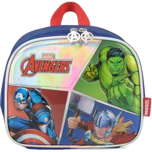 Lancheira térmica infantil Avengers. Lancheira qualidade confeccionada em poliéster, fechamento em zípper. Lancheira com alça de mão, alça tiracolo, revestimento interno térmico e etiqueta de identificação.