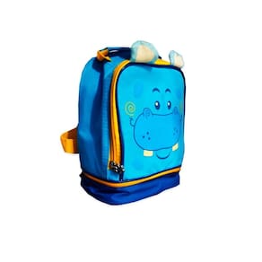 - cor azul. - designer personalizado com orelhinhas de animal. - possui 2 compartimentos. - 2 zíperes de patinhas. - alça costas reguláveis. - alça traseira para acoplar a mochila. - 1 alça de punho. - com revestimento interno térmico para conservar bebidas e lanches por muito mais tempo. - 100% poliéster.