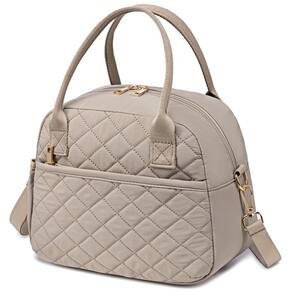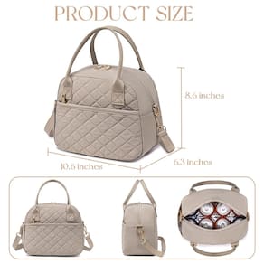 9,4 litros. 1 compartimento principal, 1 bolso frontal com zíper, 1 bolso lateral. - Grande capacidade: 26 x 16 x 22 cm. Você pode usar esta lancheira para levar o almoço para o trabalho todos os dias. Lancheira fofa. O design é uma estética feminina limpa. - ?Mantenha frio/quente?A lancheira feminina mantém sua comida fria/quente. Almoço. Frutas, vitaminas de café da manhã, costeletas de porco, arroz, sopas. Mantém tudo fresco. - ?Bolsa de almoço multifuncional?Serve para todas as coisas! O bolso grande cabe em recipientes grandes facilmente. Almoço, bebida, chiclete, barras de café da manhã, batom e qualquer outra coisa que você possa precisar durante o dia que você não colocar na bolsa. Esta bolsa é grande o suficiente para guardar todas as coisas confortavelmente. - ?Itens modernos?A frente desta lancheira é projetada com acolchoado. O design simples e elegante é um ótimo item para combinar com roupas diferentes todos os dias. Pode combinar com o seu traje e não é muito chamativo ou pegajoso. Esta bolsa fica bem com bolsa e pasta. - ?Bolsas de almoço isoladas?A parte inferior da bolsa é larga o suficiente para caber muito e permanece plana, não inclinada para os lados. A estrutura e o isolamento são bons.