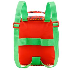 Produzida em poliéster resistente e estampado Painel frontal PVC patch Compartimento com revestimento em material que ajuda a manter o frescor dos alimentos por mais tempo Zíper com puxadores personalizados e piping bicolor forrado Alças reguláveis com faixa para acoplar o produto na haste da mala de rodinhas
