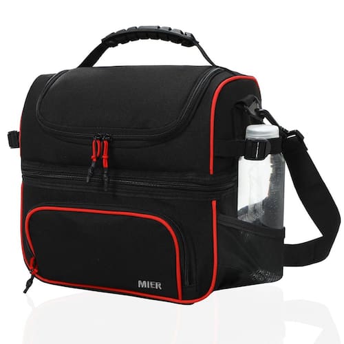 O máximo desempenho atende à máxima conveniência. Esta lancheira térmica de luxo resistente de dois andares tem o tamanho certo para almoço ou viagem. É bem isolada e contém dois compartimentos, um bolso frontal com zíper, dois bolsos laterais de malha com alça extra ajustável e uma bolsa traseira de fecho aderente e porta-cartões, bem como uma alça de ombro ajustável. Feita de poliéster resistente com um interior de folha térmica, é ótima para transportar qualquer coisa que você precise manter no lado mais frio ou quente. Se você estiver embalando uma lancheira de adulto para sua refeição de trabalho durante a semana, para uma viagem de piquenique ou simplesmente para levar itens frios do supermercado para o freezer em casa, achamos que esses dois deques são perfeitos para uma infinidade de propósitos. Basta colocá-la sobre o ombro e a cabeça para a colina gramada mais próxima! Os dois compartimentos mantêm os itens quentes e frios separados, enquanto o forro à prova de vazamento e o exterior são fáceis de limpar. A alça de ombro transversal ajustável com uma almofada de ombro oferece conforto durante o transporte. Dois compartimentos separados Esta lancheira oferece diferentes maneiras de embalar sua comida. Seus 2 compartimentos isolados permitem que você se mantenha organizado e separe alimentos/bebidas quentes e frias. Perfeito para adultos que só precisam embalar 1+ refeição Isolamento Forro com material de folha de alumínio espesso, interior acolchoado com isolamento de espuma espessa para manter os alimentos frios/quentes/frescos por horas, Design durável e elegante O estilo MIER adiciona um toque à lancheira unissex para marcar sua estatura dentro e fora de serviço. Feito de poliéster 300-denier com um revestimento de PU para ajudar a garantir o uso duradouro Material exterior: poliéster durável Forro de isolamento: forro de alumínio grosso de grau alimentício Peso: 600 g Comprimento das alças de ombro: 68-132 cm Altura do ombro: 38-71 cm O tamanho interno da seção superior é 25 cm C x 19 cm L x 11 cm A O tamanho interior da seção inferior é 25 cm C x 19 cm L x 14 cm A - Bolsa de almoço com 2 compartimentos ---- Esta lancheira oferece diferentes maneiras de embalar sua comida. A seção superior "seca" apresenta uma abertura em U e puxadores de zíper duplo para fácil acesso, ideal para itens que não vazam, como frutas, lanches ou tortas. A seção "fria" com fecho de zíper duplo inferior é isolada sem vazamento com forro de folha macia, perfeita para bebidas, água, suco e similares - Bolsa térmica térmica ---- Espuma de isolamento térmico espessa e forro de alumínio de grau alimentício trabalham juntos para manter o conteúdo frio/quente/fresco por horas; fácil de limpar. O tamanho interno da seção superior é 25 cm C x 19 cm L x 11 cm A, o tamanho interior da seção inferior é 25 cm C x 19 cm L x 14 cm A - Refrigerador de alta confiabilidade ---- um bolso frontal com zíper para guardar utensílios e guardanapos, dois bolsos laterais de malha com alças extra ajustáveis para garrafas de bebidas e latas de refrigerante, uma bolsa traseira com fecho de fecho aderente e um porta-cartões transparente, dando a você acesso fácil a tudo o que você precisa para um almoço perfeito - Confortável de carregar ---- A alça de ombro removível e ajustável para facilitar o transporte. O comprimento ajustável (MIN: 68.6 cm, MAX: 132.1 cm) serve para a maioria das pessoas ao redor do ombro na queda de um chapéu para um transporte sem as mãos. A alça de silicone MIER com design especial 2.0 garante que você tenha uma aderência confortável - Bolsa de almoço grande versátil ---- Grande capacidade com espaço suficiente, mas não muito volumosa e 7 cores para suas diferentes necessidades. Cooler perfeito para piquenique ao ar livre, churrascos, acampamento, praia, esportes, caminhadas, viagens, trabalho, etc. Ideal para homens e mulheres. Um bom presente para familiares e amigos - Pacote: 1 lancheira e 1 alça de ombro removível