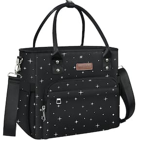 Este organizador térmico de lanches tem três maneiras de carregar como uma bolsa de mão, bolsa de ombro, sacola. Com muitos bolsos, suas chaves, frutas, lanches, refeição para 2 pessoas, garrafa de água pode ser armazenada nesta lancheira.