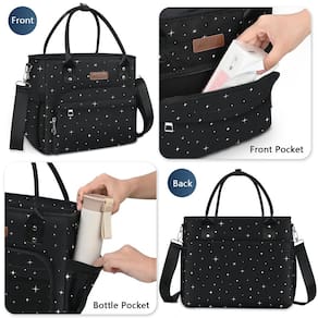 - Capacidade supergrande: As dimensões são 33 cm x 20 cm x 28 cm (C x L x A), o compartimento principal é super grande e a bolsa pode acomodar 2 lancheiras, 2 frutas, 4 bebidas, 2 copos de água e seus utensílios de mesa