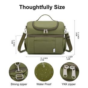 Características do produto: Marca: NOL-Natural Organic Lifestyle Pacote: 1 lancheira isolada com compartimento duplo para mulheres/homens Design de estilo: bolsa bento da NOL Opções de cores: preto, cinza, creme, rosa, verde militar, cáqui Material: nylon impermeável Isolamento: folha PEVA premium Dimensões: 26 cm x 15,7 cm x 14,7 cm. Peso: 0,3 kg Formas de transporte: 1?alça superior de transporte 2?transversal por uma alça de ombro longa removível e ajustável 3?mochila Autêntico: 100% autêntico isolado bentô/lancheiras para mulheres/homens. Zíper: qualidade YKK. Bolsos: 2 compartimentos principais, 2 bolsos internos de malha com zíper; 1 bolso frontal externo; 2 bolsos laterais de malha. Ferragens: Todas as ferragens como anéis D, gancho, puxador de zíper e fivelas são bem feitas em cor sólida, bem banhadas na cor prata. Não se preocupe, ela desaparecerá dentro de vários anos. Ocasião: O design moderno e leve é muito adequado para mulheres, homens e adultos. Perfeita para várias ocasiões, como trabalho, viagens, praia, piqueniques, festas, acampamento, caminhada, escritório e ao ar livre. Nossa lancheira vem com uma variedade de cores vibrantes para escolher, é um bom presente ideal para você e seus amigos e familiares. Dicas: Observe que, devido à medição manual, pode haver pequenas diferenças nas dimensões. As bolsas novas podem ter um leve cheiro, que pode ser reduzido colocando-as em uma área ventilada. Para manter a qualidade da bolsa, evite fricção excessiva e não lave. Em vez disso, limpe suavemente a superfície com um pano. Após a limpeza, pendure a bolsa para secar e guarde-a em local ventilado, evitando a exposição ao sol. - Pacote: 1 lancheira isolada com compartimento duplo, 1 alça de ombro removível - Lancheira com isolamento de compartimento duplo: a lancheira NOL adota design de isolamento de compartimento duplo. Diferentes alimentos podem ser colocados nas camadas superior e inferior. Pode desempenhar uma função de separação seca e molhada. A camada externa é um tecido Oxford 900D resistente, a camada interna é de material PEVA e a camada intermediária é especialmente preenchida com forro isolante de 5 mm de espessura, que fornece ótimo isolamento para manter os alimentos quentes ou frescos por até 5 horas - Grande capacidade: tamanho total 24 cm × 17,3 cm × 23 cm (C x L x A), capacidade 9 L. A seção superior possui uma abertura em U que pode ser usada para armazenar lanches, frutas. Há um compartimento com zíper no meio que é prático para armazenar talheres. O compartimento principal inferior pode ser utilizado para armazenar cerveja, bebidas e lancheiras. 1 bolso externo na frente da bolsa para pequenos itens essenciais. Existem 2 bolsos laterais de malha para garrafa de água. Perfeito para levar alimentos e lanches com suas atividades ao ar livre - Leve e portátil: esta lancheira é feita de nylon impermeável por fora, lancheira isolada com alça de ombro longa ajustável e alça superior para facilitar o transporte. As alças resistentes são unidas por costura apertada, tornando a lancheira resistente a rasgos, à prova de respingos. Mesmo que você acidentalmente derrame uma bebida no forro da lancheira para adultos, basta limpá-lo com o pano para limpar a bolsa, economizando tempo de limpeza - Lancheira versátil grande com compartimento duplo: grande capacidade com espaço suficiente, leve, função impermeável recentemente atualizada e 12 cores para suas diferentes necessidades. Cooler perfeito para piquenique ao ar livre, praia, churrascos, acampamento, esportes, caminhadas, viagens, trabalho, etc. Ideal para homens e mulheres. Um bom presente para familiares e amigos - Alta qualidade: esta lancheira foi feita com excelente acabamento para todos os detalhes. Tecido Oxford, forro interior e metais foram aprovados no relatório de teste SGS. Definitivamente faz você se sentir um excelente valor pelo preço. Se você tiver alguma dúvida sobre nossos produtos, sinta-se à vontade para entrar em contato conosco por e-mail e tentaremos resolver quaisquer problemas e garantir sua satisfação