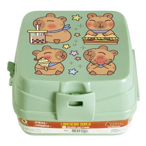 Lancheira dupla com divisória - estampa de animais fofos, compacta e práticaleve seus lanches com mais organização, praticidade e estilo com a lancheira dupla com divisórias. Seu design inteligente garante que cada alimento fique no seu espaço, preservando sabor e frescor, enquanto sua estampa divertida de animais fofos traz um toque de alegria ao dia a dia.Fabricada em plástico resistente, possui travas seguras e 4 divisórias internas, ideais para separar sanduíches, frutas, biscoitos e sobremesas sem misturar os sabores. Compacta e leve, é perfeita para levar à escola, ao trabalho, em passeios ou viagens, mantendo sempre tudo organizado e protegido Marca: Não Informado Ean: 7897839703225