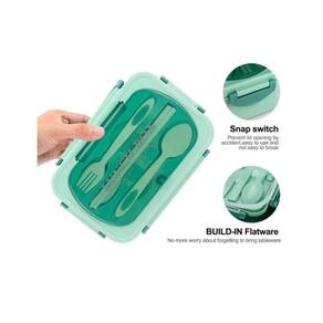 A lancheira possui 3 compartimentos para manter diferentes tipos de alimentos em todo o recipiente, mantendo o equilíbrio nutricional e o sabor , para que seu preparo seja mais saudável e saboroso do que o fast food. Você pode economizar dinheiro na sua lancheira em uma semana. As lancheiras para adultos são feitas de materiais de segurança de qualidade alimentar, sem BPA; elas podem até mesmo abrir ou fechar facilmente a trava da tampa. Os utensílios embutidos na tampa evitam perfeitamente o contato com a comida e os utensílios esquecidos. O design inovador é muito atencioso. Pode ser lavado na máquina de lavar louça e no micro-ondas - é fácil de usar, fácil de limpar, suporta aquecimento por micro-ondas (tampa não incluída) e limpeza da máquina de lavar louça (somente na prateleira superior. Recomenda-se lavar a tampa e os utensílios à mão para evitar deformações cas por altas temperaturas). À prova de vazamentos e de alta qualidade: a tira de silicone fornece uma boa vedação hermética para a lancheira, a vedação externa mantém tudo muito bem. Assim, você não precisa se preocupar com vazamentos de alimentos, mesmo quando os carrega por longas distâncias; e os 4 fechos fáceis de usar apresentam um design de rolo que aumenta muito a vida útil. Nota: Os compartimentos internos não estão completamente fechados, portanto, comida para sopa não é recomendada. A lancheira tem o tamanho perfeito para acomodar até 40,6 floz/5,07 xícaras de comida, mas permanece compacta e cabe facilmente na sua lancheira para facilitar o transporte.