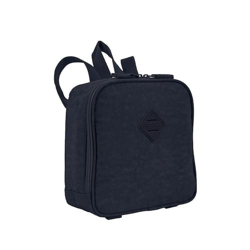 A Lancheira Crinkle Azul Sestini também possui alça carona, permitindo que ela seja acoplada a uma mochila de rodinhas, facilitando ainda mais o transporte. Além disso, ela conta com uma alça de mão em cadarço, que proporciona praticidade na hora de carregá-la.