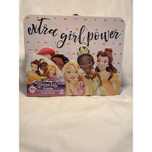 - INCLUÍDO NA COMPRA DA LANCHEIRA DISNEY PRINCESS — Inclui 1 lancheira de lata Disney Princess Extra Girl Power medindo 7,75 L x 6,25 L x 3,25 A polegadas com um quebra-cabeça de 48 peças medindo 15 L x 12,5 L polegadas com personagens da Disney Princess Ariel, Moana, Rapunzel, Tiana e Belle. Lancheira de lata incrível para crianças nas cores rosa do tema Princess. Lancheira de lata para meninas e meninos que adoram assistir filmes de princesas da Disney.