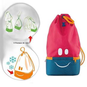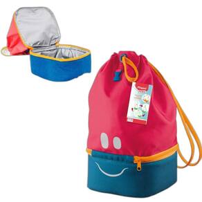 - Marca: Maped - Modelo: Lancheira Térmica - Linha: Picnik - Cor: Azul e rosa - Capacidade: 9 litros - Sistema de abertura: Zíper - 2 compartimentos - O compartimento superior é para bebidas e lanches - Compartimento inferior é um compartimento isolado para armazenar alimentos - 3 maneiras diferentes de carregar - Dimensões: 18x33cm largura x comprimento - Material superior em 100% poliéster - Forro interior em Peva Ean: 3154148723011