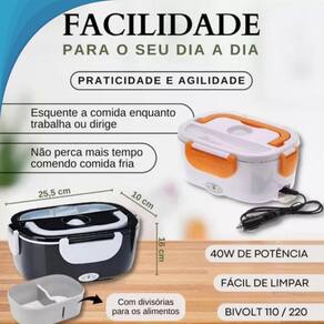 Lancheira térmica elétrica portátil bivolt para alimentos Marmiteira elétrica portátil bivolt Aqueça sua comida enquanto trabalha ou dirige, no carro, caminhão, uber, escritório, casa ou escola com a marmita elétrica térmica portátil bivolt. Esta marmita é perfeita para quem busca praticidade, agilidade e conforto. Com um modelo compacto e prático, ela comporta até 1,05l de comida, ideal para levar seu jantar ou almoço completo a qualquer lugar. Use-a em seu carro, caminhão com saída 12/24v ou em casa e no trabalho com tomada 110/220v. Precaução importante: pressione a válvula de silicone no centro da tampa antes de aquecer para evitar danos à marmita e perda da . Conteúdo da embalagem 1 marmita elétrica bivolt 1 manual de instruções 1 cabo para tomada convencional 110/220v 1 cabo para carro 12v/24v 1 colher Características Trava nas laterais para garantir que a tampa fique bem fixa Repartições para separação de alimentos Suporte para talher Pode ser utilizado sem a necessidade de água Design compacto e elegante Alça para transporte e travas de segurança Especificações Voltagem: 12v/24v - 110v/220v Potência: 40w Capacidade: 1,05l compartimento grande: 0,6l; compartimento pequeno: 0,45l Peso: 920 gramas Tamanho: 23,5 x 6,5 x 10cm Variações: preto e branco, branco e cinza, verde e musgo, branco e vermelho, branco e azul enviamos cor disponível no Dicas de segurança Não utilize água para aquecer a comida. Não aqueça no forno de micro-ondas. Não ligue sem comida. Não congele na geladeira. Não mergulhe a parte inferior em água para limpeza; utilize um pano úmido. Descubra a revolução na culinária móvel com a marmita elétrica térmica bivolt adquira agora e transforme seus momentos de alimentação em uma experiência única e prática, garantindo refeições quentes e deliciosas em qualquer lugar Marca: Não Informado Ean: 7905560411439