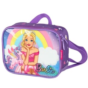 Lancheira Térmica Escolar Infantil Barbie Desenho Cor: Violeta Leve estilo e funcionalidade para a rotina escolar com a Lancheira Térmica Escolar Infantil Barbie Desenho. Com um design encantador inspirado na Barbie, essa lancheira mantém os alimentos frescos e na temperatura ideal graças ao revestimento térmico de alta qualidade. Compacta e prática, conta com alça ajustável para facilitar o transporte e fecho em zíper seguro. Perfeita para tornar as refeições das crianças ainda mais especiais e cheias de charme.
