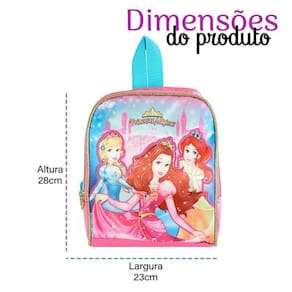 Lancheira Térmica Escolar Infantil Tema Princesas Mágicas Lancheira Térmica Escolar Infantil Tema Princesas Mágicas ===================================== Com um toque encantador, essa lancheira será a companheira perfeita para a hora do lanche na escola A lancheira conta com uma cor rosa vibrante e estampa das princesas mágicas, além de detalhes dourados para dar ainda mais estilo e magia. Seu design é compacto, podendo ser levada para qualquer lugar que você vá, desde a escola até uma viagem ou passeio. Com um ótimo e espaçoso espaço interno, é perfeita para carregar seu lanche para todos os lugares, além das alças ajustáveis que garantem conforto no transporte. Confeccionada com materiais de alta qualidade, garante que seu lanche ficara seguro, proporcionando resistÇencia e durabilidade para que possa ser Utilizado sem preocupações. ===================================== Contém: 01 Unidade Especificação: - Material: Poliéster e Plástico Térmico - Medida: 28cm x 23cm x 10cm - Térmica: Sim - Peso: 180 gramas - Cor: Rosa com Detalhes em Dourado - Estampa: Princesas Mágicas ATENÇÃO - Limpar utilizando apenas um pano úmido com sabão neutro - Evitar excesso de peso para não forçar os zíperes e costuras. ===================================== Devido à diferença entre monitores e iluminação diferentes, pode haver variação na tonalidade apresentada no anúncio. Medidas muito aproximadas.