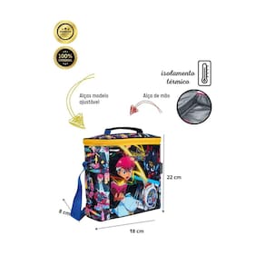 Confeccionada em Poliéster Isolamento térmico Alça de mão e transversal Design exclusivo Fechamento em zíper Medidas aproximadas: Altura: 22 cm Largura: 8 cm Comprimento: 18 cm CUIDADOS: - Guarde em um local seco e arejado evitando locais úmidos. - Evite colocar excesso de peso no produto para não forçar os zíperes e costuras. - Proteja os objetos cortantes e/ou pontiagudos evitando o contato direto com o produto. - Evitar altas temperaturas. - Cores claras poderão manchar quando em contato com outros objetos ou roupas de cores pigmentadas.