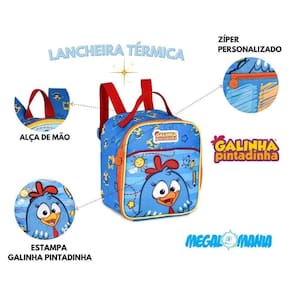 Apresentando a lancheira térmica da Galinha Pintadinha, o acessório perfeito para manter o lanche do seu pequeno fresquinho e delicioso Com um design colorido e alegre, estampado com a personagem favorita das crianças, esta lancheira é ideal para a escola, passeios ou viagens.