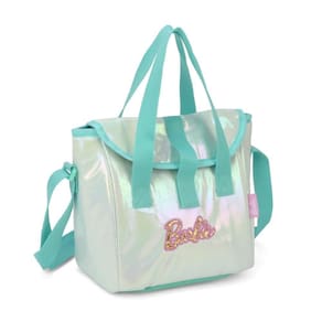Esta lancheira vai deixar qualquer menina encantada Com um tamanho grande para caber bastante coisa, ela é térmica e linda. Possui alças de mão e uma alça para levar a tiracolo. Na cor verde em poliéster com brilho. Pode ser usada também como frasqueira para levar maquiagens e outros pertences.