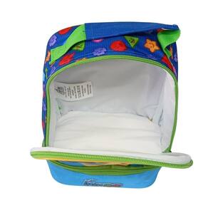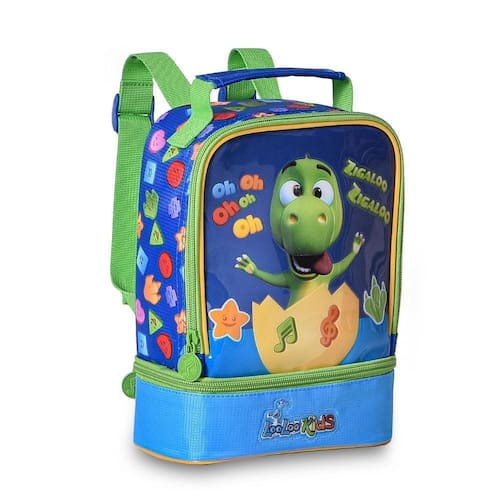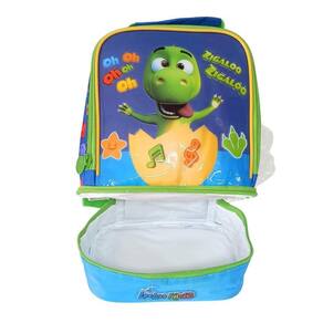 Características: - a lancheira é confeccionada em poliéster com painel frontal em pvc. - possui dois compartimentos, ambos com revestimento térmico. - acompanha puxadores personalizados. - tem alça de mão e alças de costas reguláveis. - frente com estampa exclusiva do personagem zigaloo. - perfeita para escola ou para passeios. - tamanho aproximado: 17cm largura x 24cm altura x 10cm profundidade
