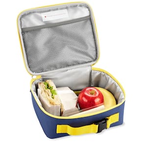 Um interior isolado e limpo mantém alimentos e bebidas frias, além de um bolso interno de malha para guardar o dinheiro do almoço, uma bolsa de gelo ou utensílios.
