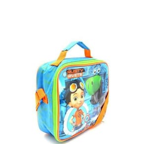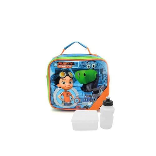 Lancheira Térmica Soft Rusty Rivets 11571 Dmw Lancheira Rusty Rivets. Além de prática e fácil de limpar, a lancheira vem com as cores principais e estampa do personagem Rusty e seu melhor amigo dinossauro robótico. Pode ser acoplada na haste do carrinho escolar. E é claro, acompanha porta-lanche e squeeze. Composição: poliéster e pvc. Dimensão:8x20x22cm. Cor: Azul