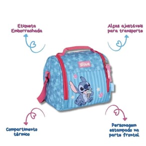 Lancheira Térmica Stitch e Angel Disney Meninas Escolar Kids - Luxcel A Lancheira Térmica Stitch Disney é perfeita para deixar os lanches das meninas mais práticos e divertidos. Com design exclusivo do adorável personagem Stitch, ela traz cores vibrantes e um visual encantador. Seu interior térmico ajuda a conservar os alimentos frescos por mais tempo, ideal para a escola ou passeios. Possui alça de mão reforçada, alça tiracolo ajustável e fechamento em zíper, garantindo praticidade e segurança no dia a dia. Características Lancheira: - Pega de Transporte Manual - Alça carona - Abertura superior - Bolso frontal utilitário - Zíper com Puxadores Personalizados - Logo Emborrachado - Interior Térmico Especificações Lancheira: - Marca: Luxcel - Material: 100% Poliéster - Forro: PVC - Medidas Aprox. axlxp : 20cm x 23cm x 15cm - Tema: Stitch - Cores: Rosa e Magenta - Forro: 100% PVC - Capacidade Aprox. litros : 6 Litros Conteúdo da Embalagem: La50103sc - Lancheira Térmica Stitch Luxcel As cores podem variar entre as imagens mostradas acima e o produto. Imagens meramente ilustrativas. Todas as informações divulgadas são de responsabilidade exclusiva do fabricante. de 90 dias contra defeito de fabricação. Marca: Não Informado Ean: 7896094436749