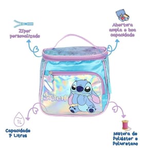 Lancheira Térmica Stitch Meninas Escolar Passeio Infantil - Luxcel A Lancheira Térmica Stitch Disney é perfeita para deixar os lanches das meninas mais práticos e divertidos. Com design exclusivo do adorável personagem Stitch, ela traz cores vibrantes e um visual encantador. Seu interior térmico ajuda a conservar os alimentos frescos por mais tempo, ideal para a escola ou passeios. Possui alça de mão reforçada, alça tiracolo ajustável e fechamento em zíper, garantindo praticidade e segurança no dia a dia. Características lancheira: - Pega de Transporte Manual - Alça carona - Alça de Costas Ajustável - Abertura superior - Bolso frontal utilitário - Etiqueta identificadora - Zíper com Puxadores Personalizados - Detalhes holográficos - Interior Térmico Especificações Lancheira: - Marca: Luxcel - Material: 70% Poliéster e 30% Poliuretano - Medidas Aprox. axlxp : 21cm x 23cm x 14,5cm - Tema: Stitch - Cor: Azul e roxo - Forro: 100% PVC - Capacidade Aprox. litros : 7 litros Conteúdo da Embalagem La42413sc - Lancheira Térmica Stitch Luxcel As cores podem variar entre as imagens mostradas acima e o produto. Imagens meramente ilustrativas. Todas as informações divulgadas são de responsabilidade exclusiva do fabricante. de 90 dias contra defeito de fabricação. Marca: Não Informado Ean: 7899783738834