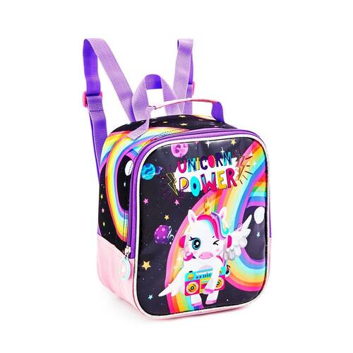 Lancheiratérmica Unicórnio Produzido em poliéster Possui alças de costas Material interno térmico Ziperes com puxadores personalizados Estampa estilizada Não acompanha potinho e garrafinha Dimensões: 22 x 20 x 8cm alt x larg x prof ; Ean: 7899310514412