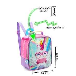 A Lancheira Térmica Unicórnio Arco Íris Lancheira Fashion Oc é o acessório perfeito para levar suas refeições de forma prática e estilizada. Produzida em poliéster de alta qualidade, essa lancheira possui alças de costas ajustáveis, proporcionando maior conforto durante o transporte.