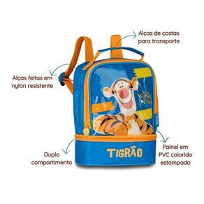 Mochila Costas com Capuz Tigrão Escolar Creche Meninos Kids - Clio Style Imagine um dia em que a aventura chama Você vai precisar de um companheiro à altura, alguém que traga alegria, pulos e muita diversão para cada passo. E se esse companheiro fosse o próprio Tigrão Com a Lancheira do Tigrão, cada ida à escola, cada passeio no parque, cada visita aos amigos se torna uma nova história para contar. Ela não é apenas uma lancheira, é um convite para o mundo mágico do Bosque dos Cem Acres, onde a amizade é o maior tesouro e a alegria é contagiante. Sinta a energia do Tigrão em cada detalhe, a certeza de que a diversão está sempre ao seu lado. Prepare-se para pular, brincar e explorar com o Tigrão, porque com ele, a vida é sempre uma grande aventura Características Lancheira: - Pega de Transporte Manual - Alças Traseiras de Costas - Duplo Compartimento - Interior Térmico - Zíper com Puxadores Personalizados - Alças de Nylon Ajustáveis Especificações Lancheira: - Marca: Clio Style - Material: Poliéster, PVC - Medidas Aprox. axlxp : 24cm x 17cm x 10cm - Tema: Tigrão, Ursinho Pooh - Cor: Azul/Laranja - Capacidade Aprox. litros : 4 litros - Estilo do tecido: Estampado, Brilhante Conteúdo da Embalagem: - TS27040L - 1x Lancheira Térmica de Costas Tigrão As cores podem variar entre as imagens mostradas acima e o produto. Imagens meramente ilustrativas. Todas as informações divulgadas são de responsabilidade exclusiva do fabricante. de 90 dias contra defeito de fabricação. Marca: Não Informado