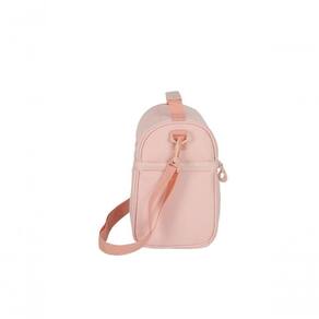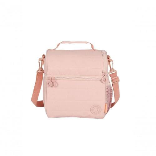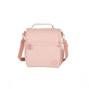 Conta com bolsos laterais livres, alça transversal removível, zíper personalizado e logo em metal, garantindo durabilidade e estilo. Seu grande diferencial é ser modelo duplo, possuindo um compartimento principal e um compartimento menor superior, proporcionando organização prática para lanches, garrafinhas, utensílios e pequenos objetos.