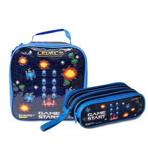 Prepare-se para uma nova aventura escolar com o Estojo Video Game Com Zíperes Triplo.