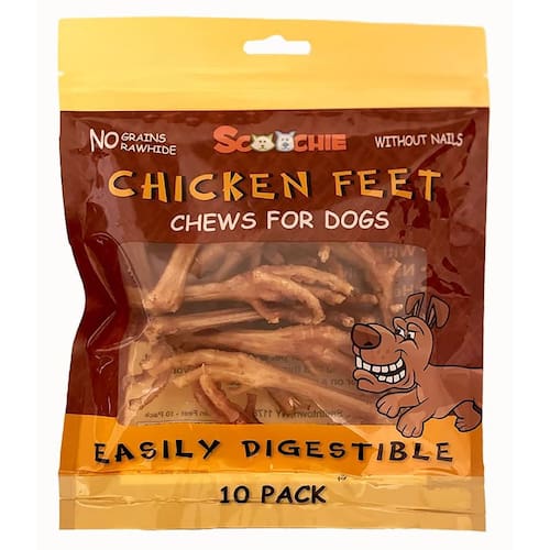 Pacote com 10 pés de galinha Scoochie Pet, sem unhas, petiscos e guloseimas para animais de estimação