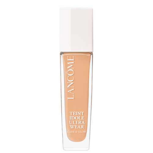 Base líquida com acabamento glow. Lancôme Teint Idôle Wear Care & Glow promove uma cobertura média, hidrata e permite 24 horas sem transferência, para uma make duradoura.