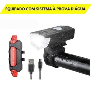 Lanterna bike ciclismo recarregável usb + lanterna traseira o kit de farol de bicicleta com lanterna traseira de led que estamos apresentando é uma escolha excelente para ciclistas que desejam uma opção durável, fácil de instalar e que forneça um brilho intenso em suas viagens de bicicleta. Este kit é projetado para oferecer uma iluminação excepcional durante passeios noturnos ou com pouca luz, permitindo que você pedale com segurança em condições de baixa visibilidade. Com a sua lanterna traseira de led, você pode garantir que outros ciclistas e motoristas possam ver você claramente, reduzindo o risco de acidentes. O kit é à prova d'água, o que significa que ele pode ser utilizado em condições climáticas adversas, sem danificar o produto. Isso garante que o kit possa ser utilizado com confiança em qualquer condição climática, sem comprometer a qualidade da iluminação. Além disso o farol é recarregava através de um simples cabo usb, ou seja, você pode garantir facilmente a iluminação da sua viagem, sem se preocupar com pilhas ou baterias. Também possui um poderoso led capaz de produzir 300 lumens. Sua bateria demora cerca de 3h para carregamento completo. A instalação deste kit é fácil e rápida, não exigindo ferramentas especiais ou conhecimento técnico avançado. O design compacto permite que você instale o farol e a lanterna traseira em segundos, sem comprometer o desempenho ou a estética da sua bicicleta. Em resumo, este kit de farol de bicicleta com lanterna traseira de led é a escolha ideal para ciclistas que buscam uma iluminação de alta qualidade, fácil instalação e durabilidade para todas as suas viagens de bicicleta. Garanta a sua segurança e visibilidade enquanto desfruta de suas aventuras de bicicleta com este kit de farol de bicicleta brilhante e eficiente. Características técnicas do kit