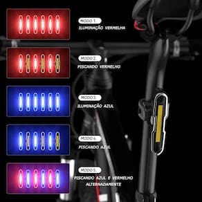 Lanterna de BiKe Gold Sports alto brilho possui 5 Modos de Funções com Cabo USB Recarregável A Prova de Água é um equipamento necessário para sua segurança seus leds são de ultima geração com um potência de alcance incrível. A Lanterna vem com suporte de borracha anti - risco e pode ser colocada em sua Bicicleta sua luz e vermelha, Branca ou Azul. Possui teste dos modos duração: no modo forte 4 horas, piscando 10 hora, alerta 12 horas e estroboscópica 8 horas. A lanterna possui anti impacto de até 1.5 metros de altura, sua iluminação chega a uma distância de 100 metros, e pode ser colocada na frente na trazeira de sua bike, no capacete, na mochila etc... 5 modos de iluminação 1- iluminação vermelha 2- iluminação vermelha piscando 3- iluminação azul 4- iluminação azul piscando 5- iluminação azul, branca e vermelha piscando Prova d água :Sim (não submergível) Método de carregamento: Carregamento USB Android, Tomada de computador, banco de energia, tomada doméstica Durabilidade do tempo em uso: 2 horas tempo de carregamento da bateria interna: 4 horas Materiais: ABS, PC e borracha Carregamento interface: através de um cabo USB Bateria: 500mAH Carregamento interface: através de um cabo USB Bateria: 500mAH Acessórios:01 cabo usb e anéis de borracha para adaptar no cano abaixo do Cilim Garantia: 01 mês somente contra defeito de fabricação Marca: Gold Sports