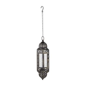 Decorações de Natal Accent Plus Lanterna interna Decorações de Natal decorativas ao ar livre Lanterna de vela Castiçais vitorianos Lanterna suspensa de metal, 4 x 4,5 x 13 polegadas, corrente de 9,25 polegadas