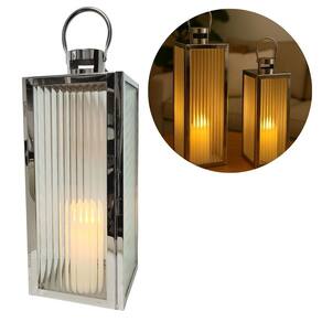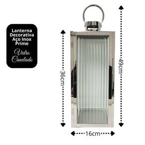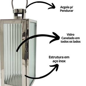 Lanterna Decorativa Iluminada Luxo em Aço Inox com Vidro Canelado e Vela LED – Modelo Clássico Moderno – 49cm x 36cm x 16cm