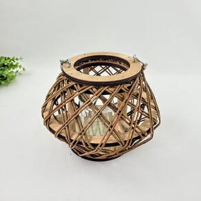 Lanterna Decorativa Lampião Castiçal Madeira Corda Rústico G
